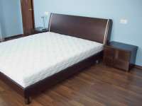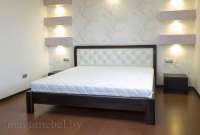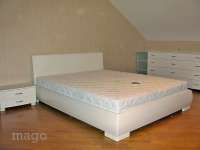За основу взята оригинальная конструкция итальянской модели. В данном варианте кровать изготовлена из 100% массива ясеня. Особенностью данной модели является то, что ортопедическое основание крепится в каркасе кровати и этим достигается дополнительная визуальная лёгкость. Количество предметов, габаритные размеры и комплектация учитывается индивидуально. Все размеры можно изменить без существенного влияния на стоимость изделия. Так же в данной модели возможна установка выкатных ящиков или подъёмного механизма.