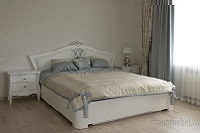За основу взята оригинальная конструкция итальянской модели. В данном варианте кровать изготовлена из 100% массива ольхи. Особенностью данной модели является то, предусмотренное дизайном отсутствие ручек на тумбочке и комоде. Такое решение компенсируется удобным захватом для пальцев на ящиках. Количество предметов, габаритные размеры и комплектация учитывается индивидуально. Все размеры можно изменить без существенного влияния на стоимость изделия. Так же в данной модели возможна установка выкатных ящиков или подъёмного механизма.