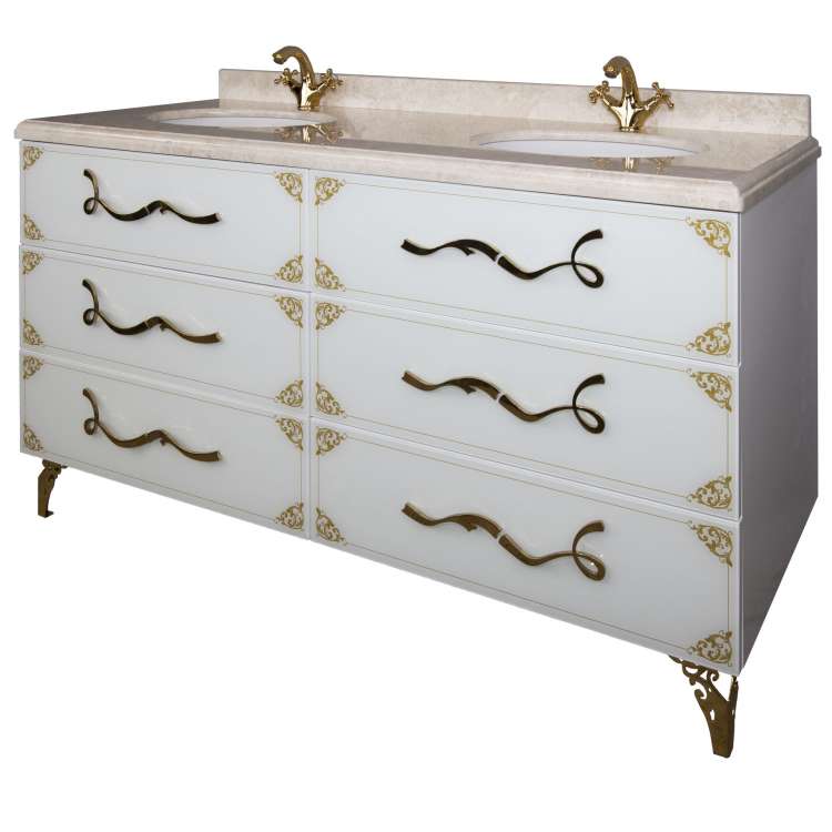 Белый глянец, фурнитура золото или хром, фасад отделка стеклом с золотом или серебром. |